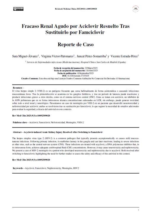 Coscojuela Otto A, Peña Porta JM, Álvarez Lipe R. Fracaso renal agudo secundario a aciclovir. Med Clínica [Internet]. 10 de enero de 2020 [citado 24 de noviembre de 2024];154(1):36. Disponible en: https://www.sciencedirect.com/science/article/pii/S00257753 19302933. DOI: 10.1016/j.medcli.2019.03.031