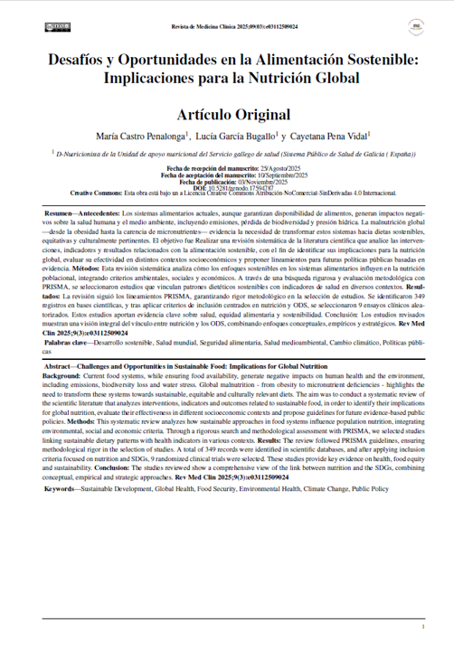 Desafíos y Oportunidades en la Alimentación Sostenible: Implicaciones para la Nutrición Global. Rev Med Clin [Internet]. 2025 Nov. 3 [cited 2025 Nov. 27];9(3):e03112509024. Available from: https://ictuslatam.medicinaclinica.org/index.php/rmc/article/view/681