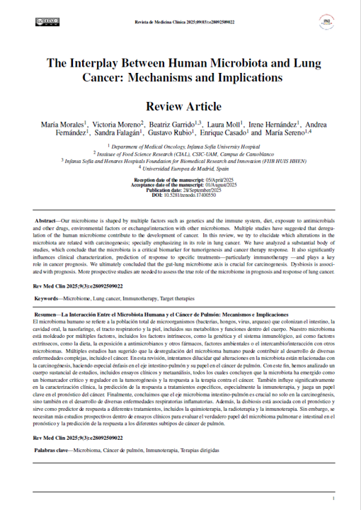 Our microbiome is shaped by multiple factors such as genetics and the immune system, diet, exposure to antimicrobials and other drugs, environmental factors or exchange/interaction with other microbiomes. Multiple studies have suggested that deregulation of the human microbiome contribute to the development of cancer. In this review, we try to elucidate which alterations in the microbiota are related with carcinogenesis; specially emphasizing in its role in lung cancer. We have analyzed a substantial body of studies, which conclude that the microbiota is a critical biomarker for tumorigenesis and cancer therapy response. It also significantly influences clinical characterization, prediction of response to specific treatments—particularly immunotherapy —and plays a key role in cancer prognosis. We ultimately concluded that the gut-lung microbiome axis is crucial for carcinogenesis. Dysbiosis is associated with prognosis. More prospective studies are needed to assess the true role of the microbiome in prognosis and response of lung cancer.