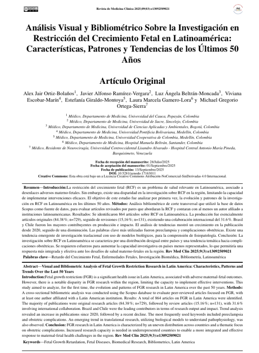 Lozada-Martinez ID, Visconti-Lopez FJ, Marrugo-Ortiz AC, Ealo-Cardona CI, Camacho-Pérez D, Picón-Jaimes YA. Research and Publication Trends in Pediatric Surgery in Latin America: A Bibliometric and Visual Analysis from 2012 to 2021. J Pediatr Surg. 2023; 58(10):2012-2019.